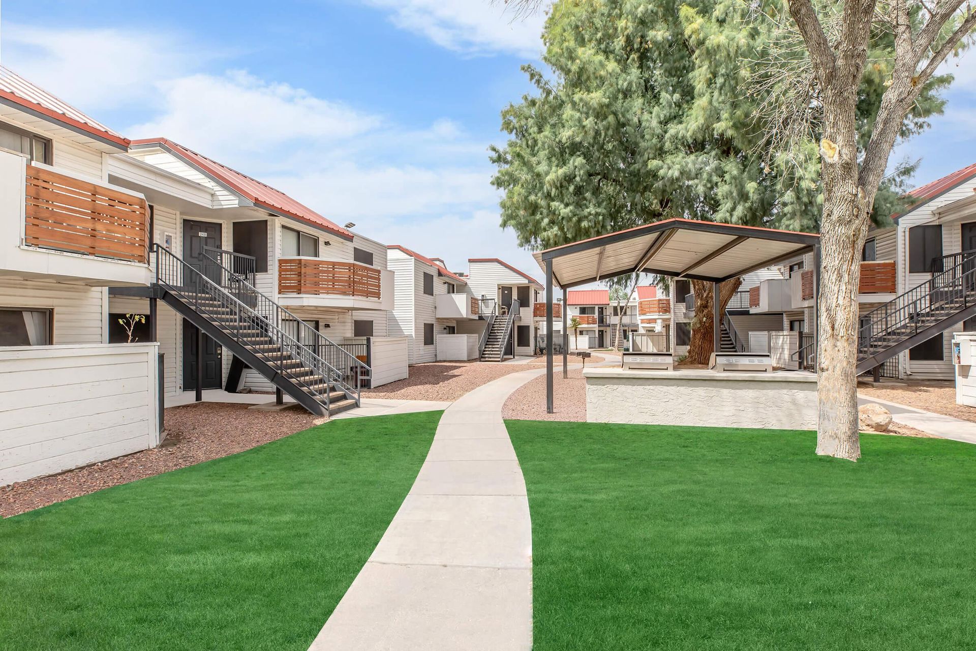 At Metro Tucson Apartments, we offer a variety of one & two bedroom apartments with a few different layout and size options. Our units include large closets, a private patio/balcony, and vinyl wood flooring throughout common areas with carpet in the bedrooms. Kitchens are equipped with a refrigerator, a dishwasher, an oven/range, garbage disposal, and plenty of room to make your favorite meals!