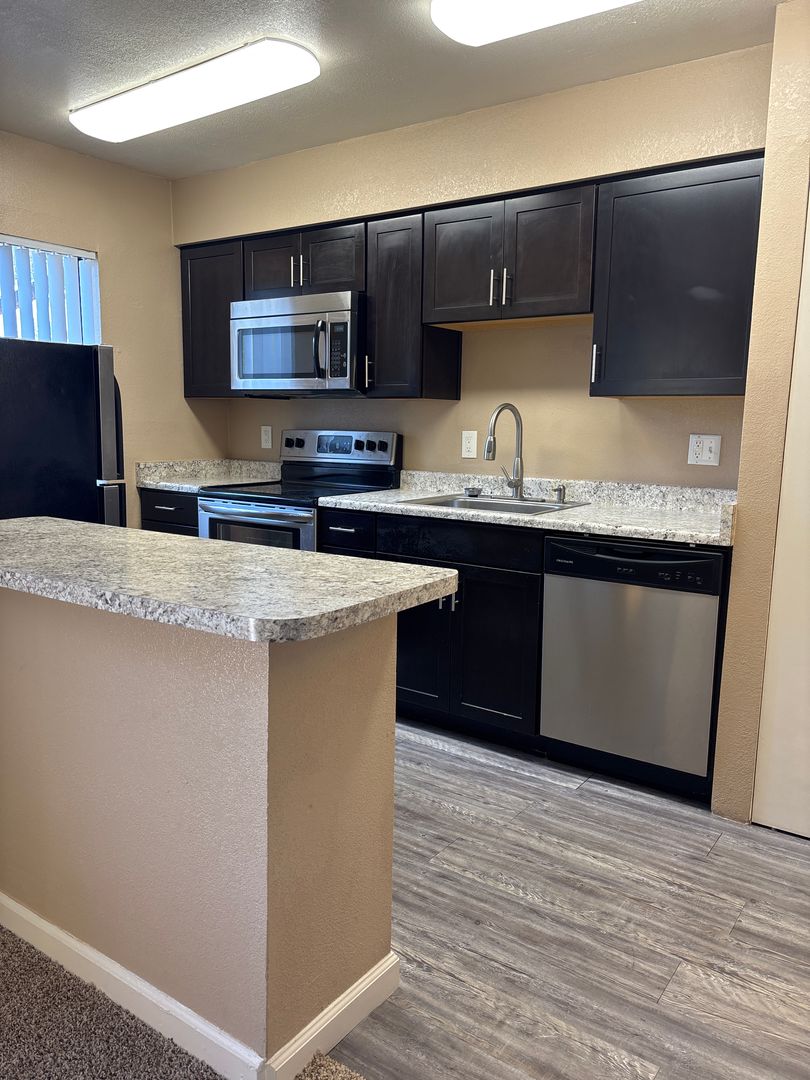 “Beautifully remodeled unit featuring stainless steel appliances, including a dishwasher, range, and built-in microwave. Enjoy elegant marble countertops and a modern, stylish design—this is a must-see home!”